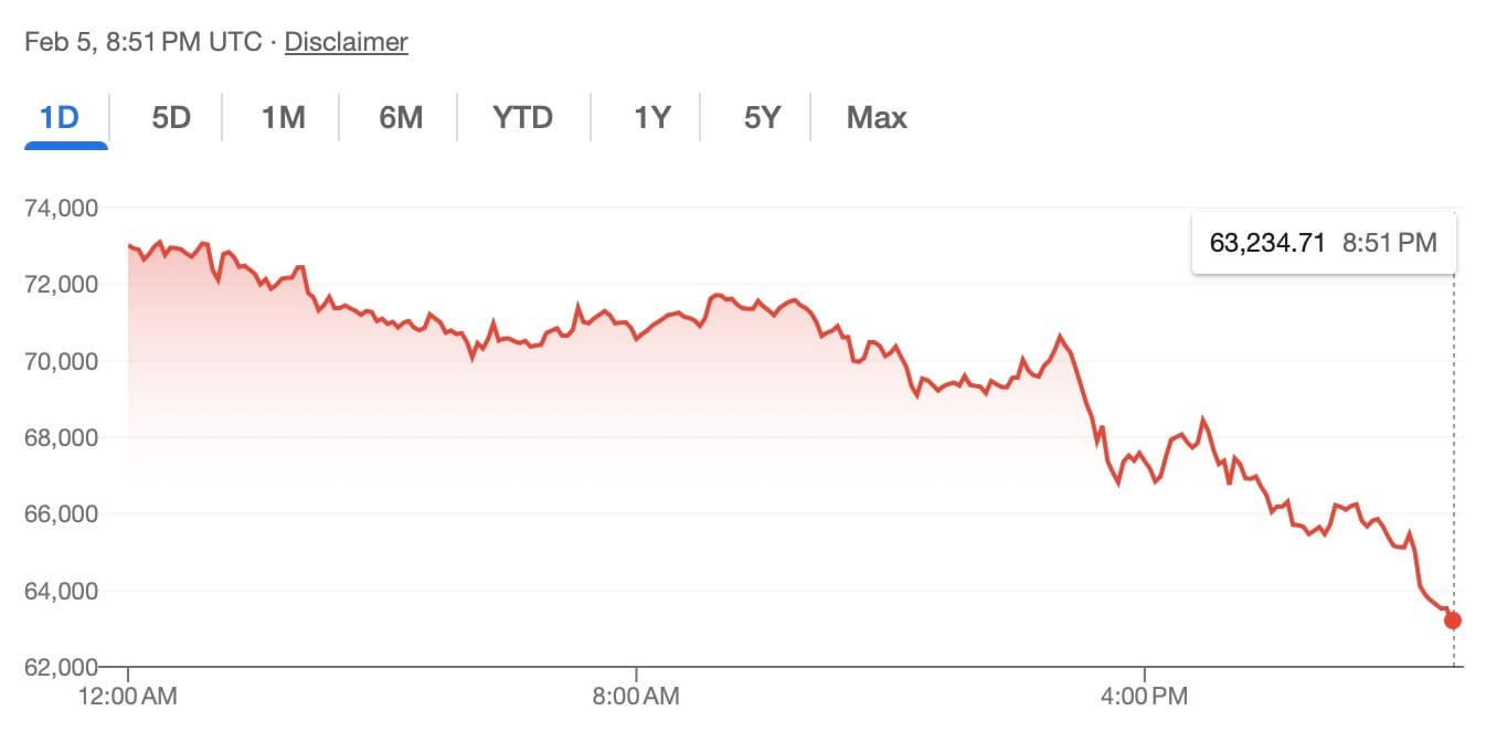 Bitcoin is still falling. The price dropped another 11% to around $67,000, the lowest level in 15 months. Since its peak in October, Bitcoin is down roughly 46%. Digital gold is having a very analog meltdown. After Donald Trump’s election in late 2024, crypto prices ran hot on hopes of a friendly White House. That optimism is now gone. So is a lot of money. Crypto companies are feeling it. Coinbase fell over 9%. Robinhood dropped more than 8%. Mining firm Riot sank 10%. Strategy, the company that mostly just buys Bitcoin for a living, fell 13%. It holds over 700,000 Bitcoin bought at prices above today’s levels. The math is not mathing. Trump-linked crypto projects are also sliding. American Bitcoin is down more than 80% since October. The World Liberty Financial token lost about half its value. The $TRUMP meme coin now trades under $4, far from its pre-inauguration highs.