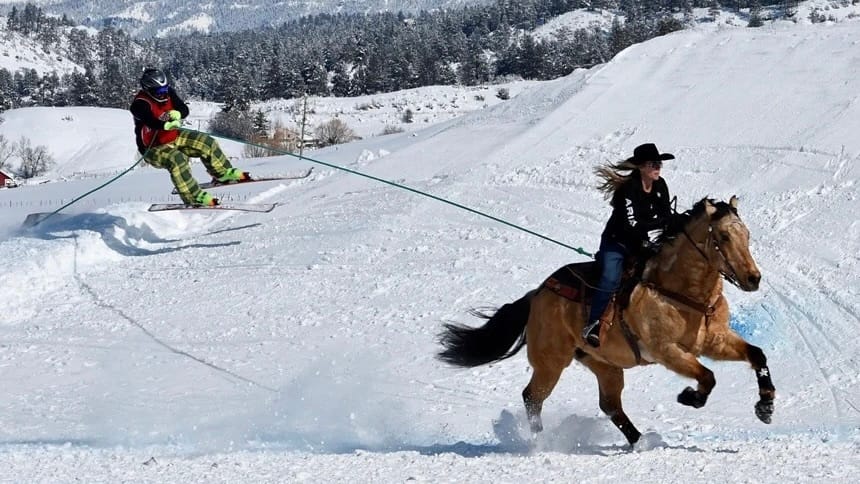 This week, thousands of people are gathering in Boise, Idaho to watch skiers get dragged by horses at 40 miles per hour. This is called skijoring. Skiers race around jumps and gates while holding onto a rope attached to a galloping horse. Flat course. No brakes. Just vibes and horsepower. Skijoring actually has history. It was the first-ever demonstration sport at the Winter Olympics back in 1924 in Chamonix. Somehow, it did not become mainstream. Tragic. Originally, skiers were pulled by reindeer in Lapland. Then horses. Then dogs. Then motorcycles and cars in the 1950s. Allegedly airplanes too, but skiers were advised to let go before takeoff. Reasonable. Europe treats skijoring like a classy winter tradition. Think frozen lakes and fancy events in St. Moritz. America looked at that and said: let’s add riders and chaos. In the U.S. version, the horse has a rider. Often the skier and rider meet for the first time at the start line. Trust is built very quickly. Some are elite skiers. Some are elite riders. All of them are choosing danger for entertainment.