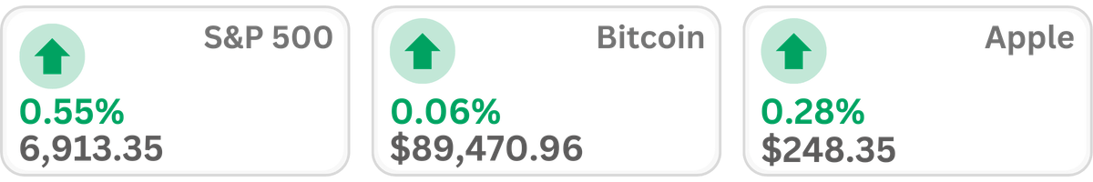 The Dow jumped 307 points (+0.6%) to 49,384, clawing back losses from earlier this week after Trump’s Europe tariff scare. The S&P 500 added 0.55% to 6,913, while the Nasdaq led the charge, up 0.9%, powered by big tech names like Nvidia, Microsoft, and Meta.
